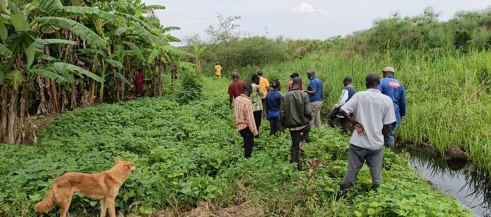 Communities digging beyond the mark stone. They were advised to respect the buffer zone as it is the breeding area for aquatic species like fish. This encroachment was identified in Rwabagoma village.