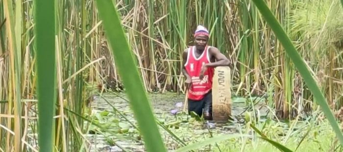 The mark stone in Buswabwera over taken by the wetland due to poor farming methods by adjacent communities.
